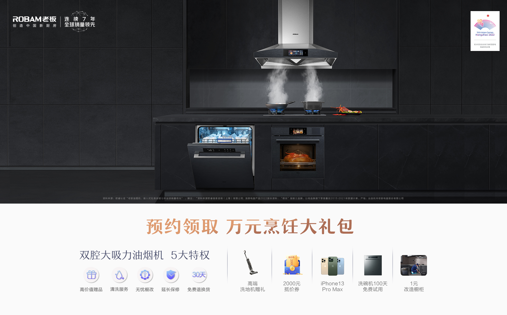 购买老板电器指定型号产品,赠送价值3290元添可高端洗地机或等值赠品。
