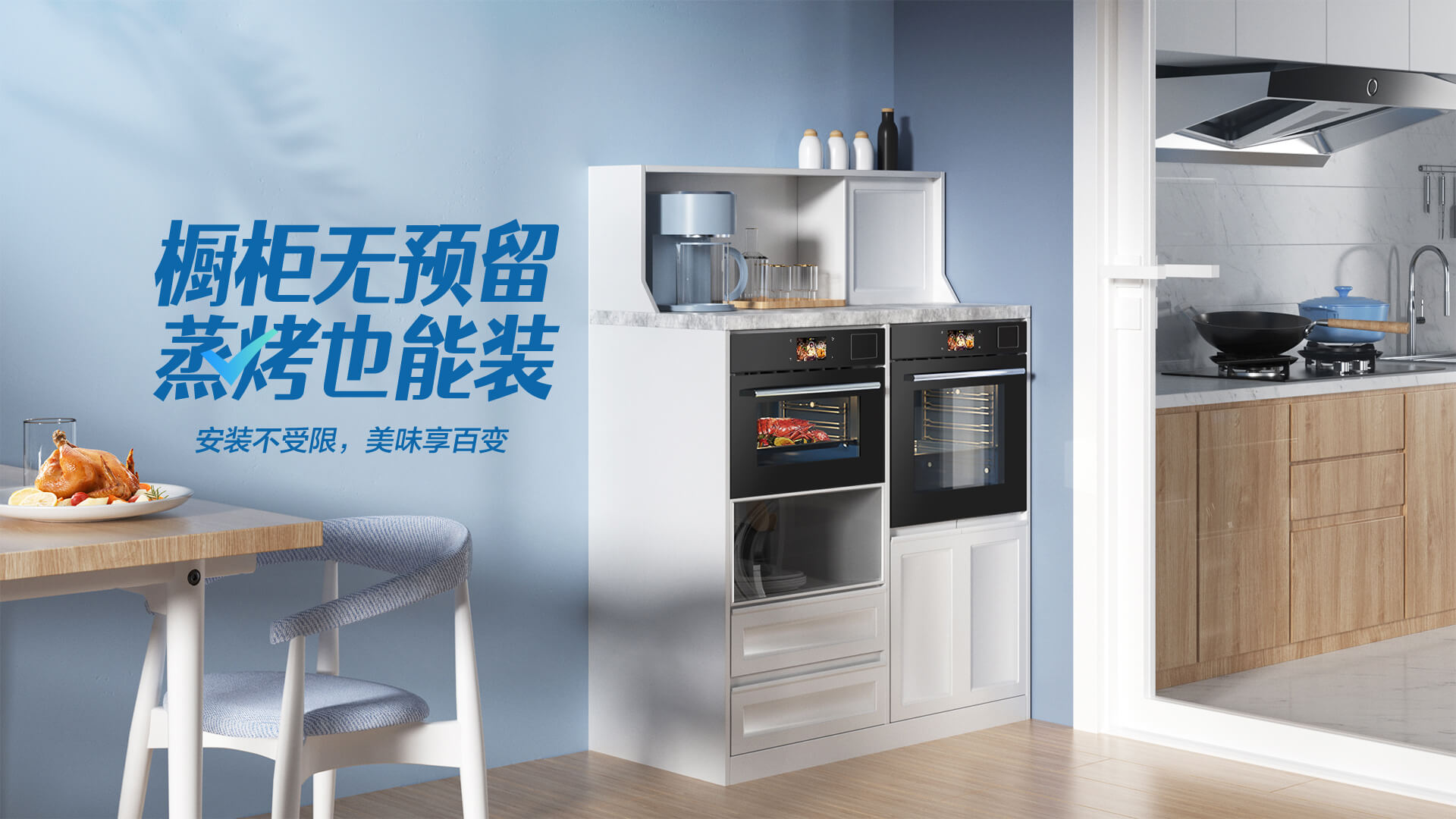 老板蒸烤一体机,定制专属独立柜,安装不受限,美味享百变。款式多样,随心搭配,好用省空间,用老板蒸烤一体机,鲜蒸嫩烤空气炸,一日三餐轻松达。